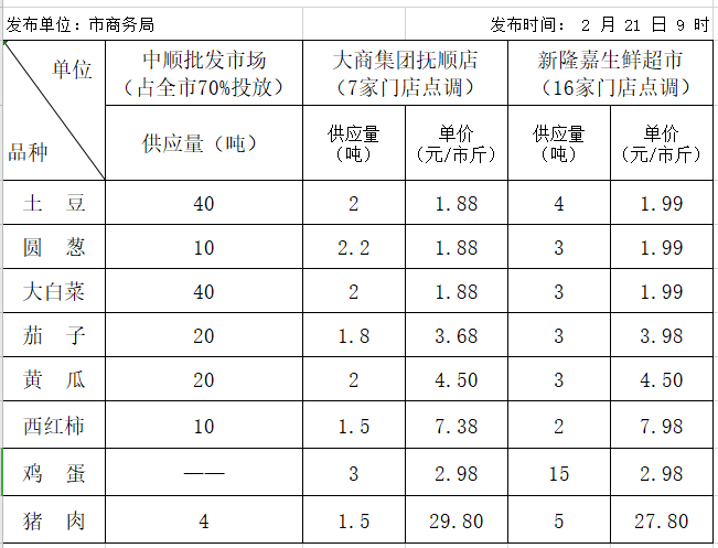 【社会聚焦】抚顺市重点渠道主要蔬菜品种日投放价格信息