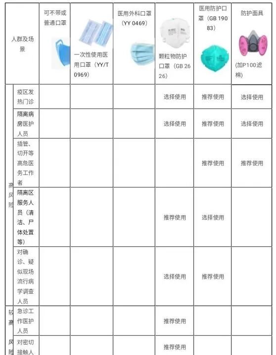 新型冠状病毒感染的肺炎防控期间,建议选择合适的口罩类型,不过度防护。按防疫工作性质和风险等级提出以下指引: